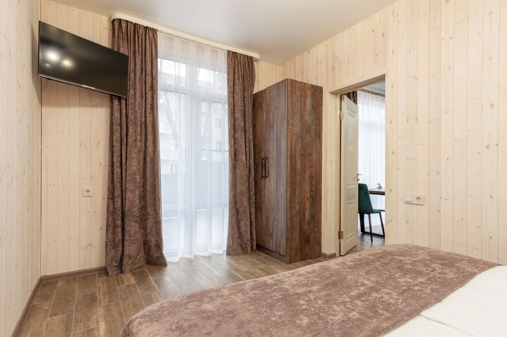 Хорошая гостиницы. Расположена в 20 минутах ходьбы от курортного бульвара. Есть парковка. Номера чистые. Удобные кровати. Есть возможность самостоятельного приготовить еду. Для этого есть всё необходимое.