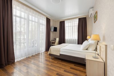 Новый гостевой дом находится в тихом месте, в 12 минутах ходьбы от Курортного бульвара. Предоставляем номера как с одной большой, так и с двумя односпальными кроватями. Также есть возможность установить дополнительное место для вашего ребенка или третьего человека. В наших номерах есть всё необходимое для вашего комфортного отдыха (кондиционер, холодильник, туалетно-косметические принадлежности, тапочки, чайник, утюг и фен). Бесплатный Wi-Fi и TV с плоским экраном. В 2 минутах ходьбы от нас есть супермаркет, 2 аптеки, 2 кафе, Сбербанк, цирк, детские площадки и многое другое. Летняя …